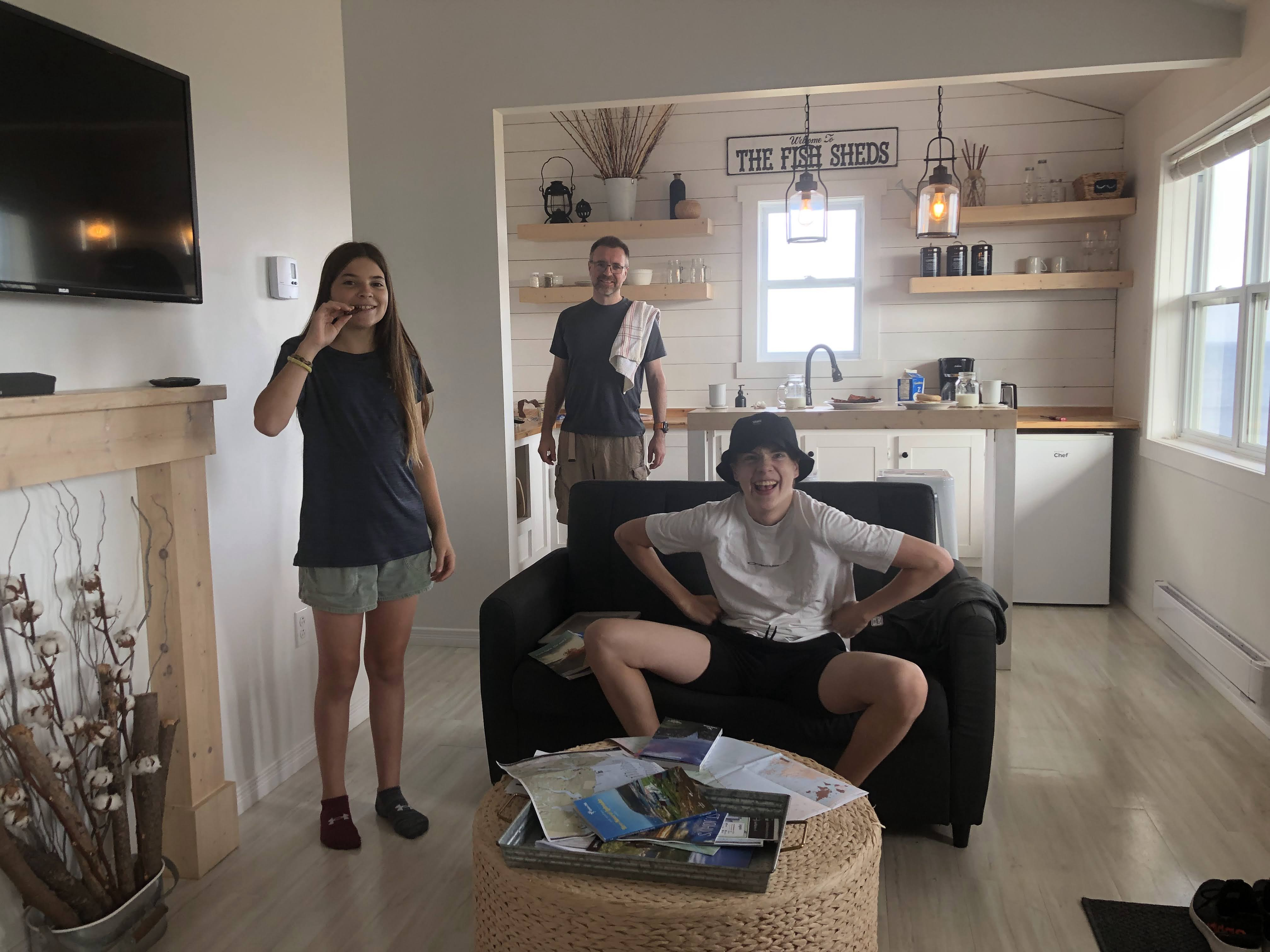 Maintenant, direction Rocky Harbour! Une heure de route plus tard, découverte des minis chalets (The Fish Sheds pour les curieux) avec Chris le Newfie (mais très gentil). Les chalets sont supers! Un rustique classe. Charlie et moi avons notre propre chalet. On a une super vue sur le Golfe du Saint-Laurent. C'est vraiment magnifique! On peut voir des aigles ainsi que des baleines parfois. Arrive la fin de la journée assez rapidement avec les délais du vol, on se rend donc dans un petit restaurant de fruits de mers près des chalets plus bas dans le village.
