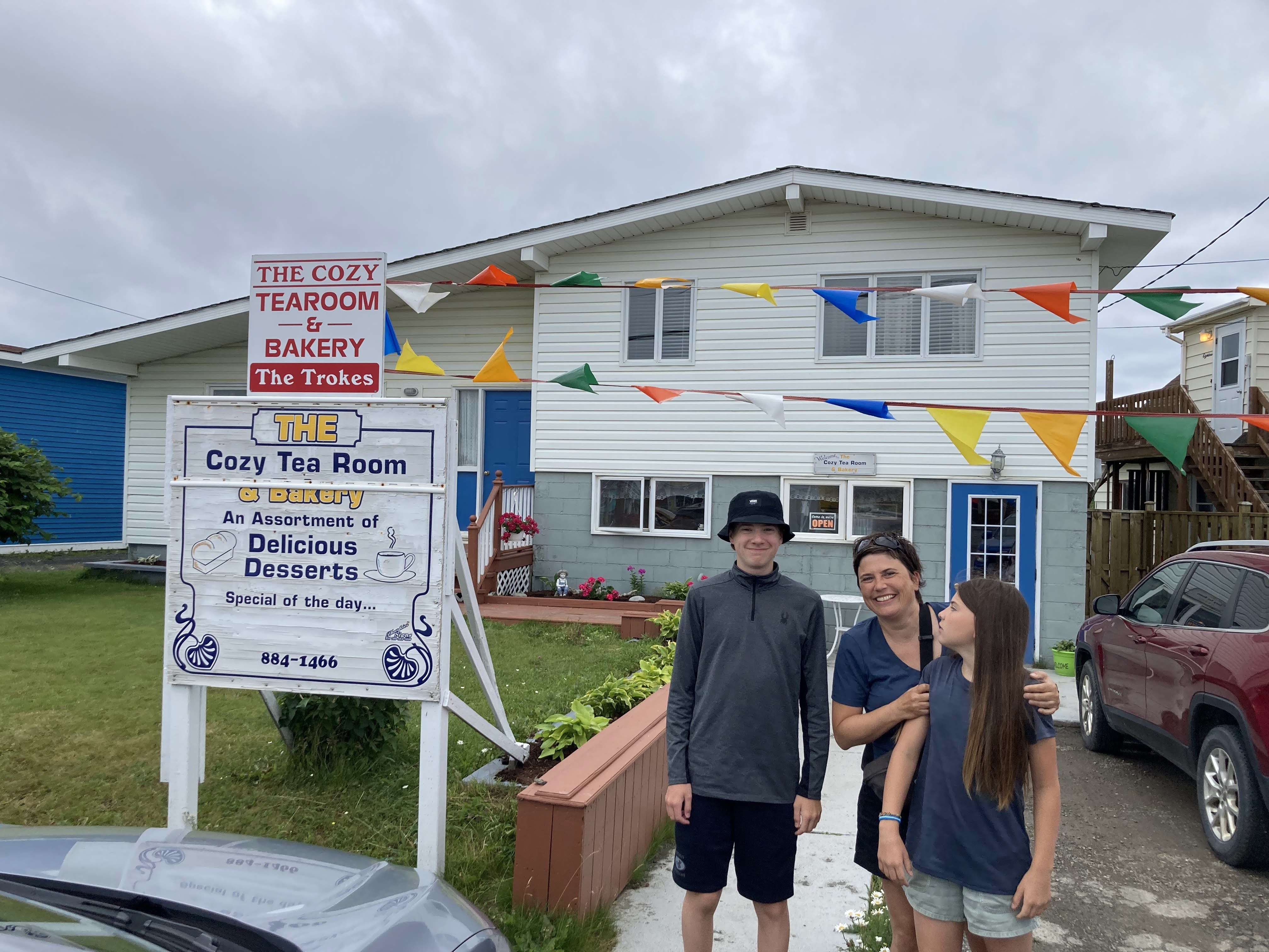 Ce matin, nous optons pour un petit déjeuner fort sympathique dans une salon de thé terre-neuvien… quasiment chez l’habitant. Joyce et Joe, très certainement cousines de Patty et Patty, nous accueillent dans leur petit demi-sous-sol bondé de gens de la place. Quand même un bon signe car l’extérieur est ma foi plus que louche (preuve à l’appui).