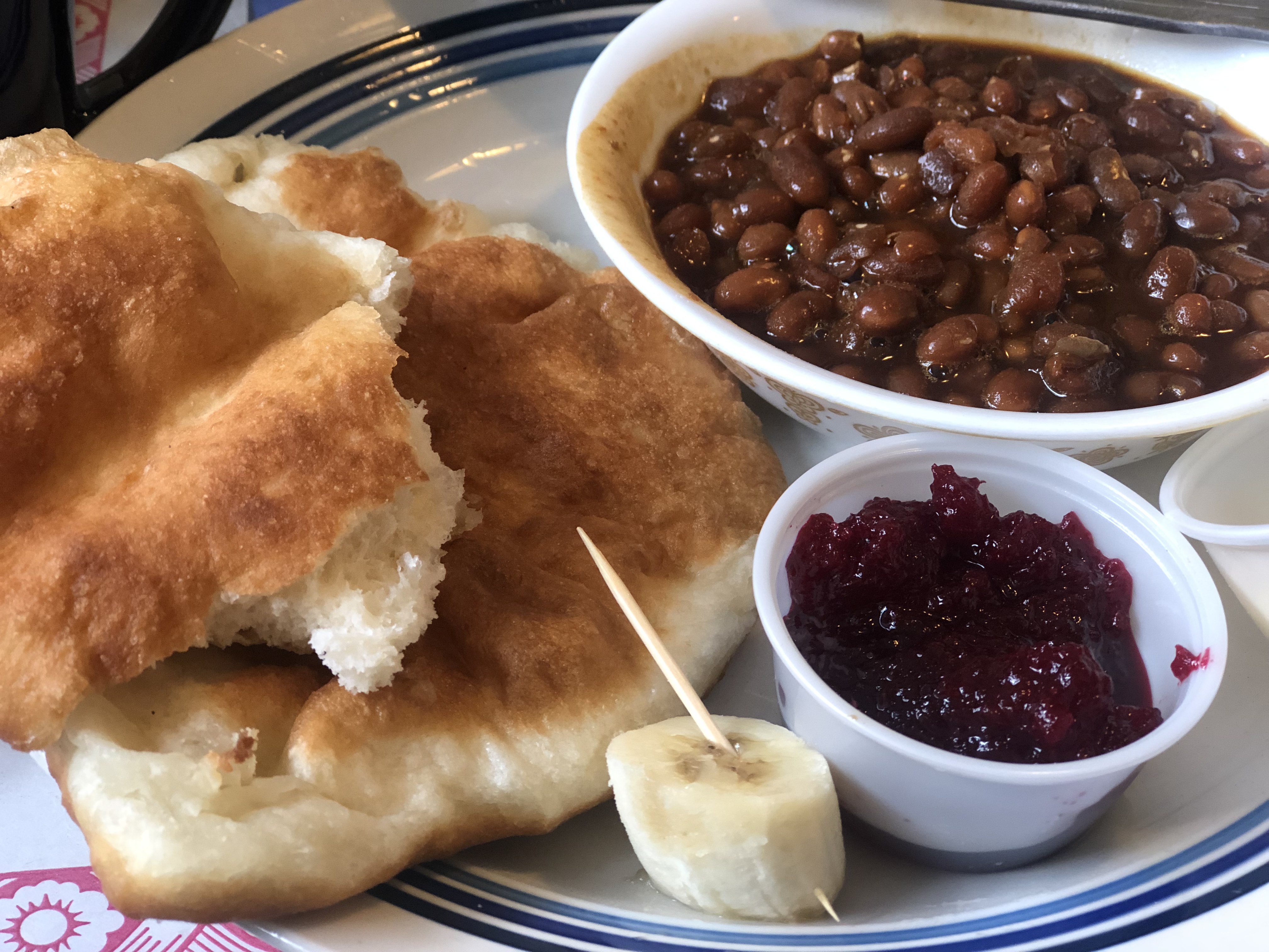 Anik s’est risquée à essayer les fameux Toutons avec beans, un plat traditionnel de TN. Ces petites crêpes/beignets/pains frits dans la poêle se sont avérés délicieux… et très consistants.