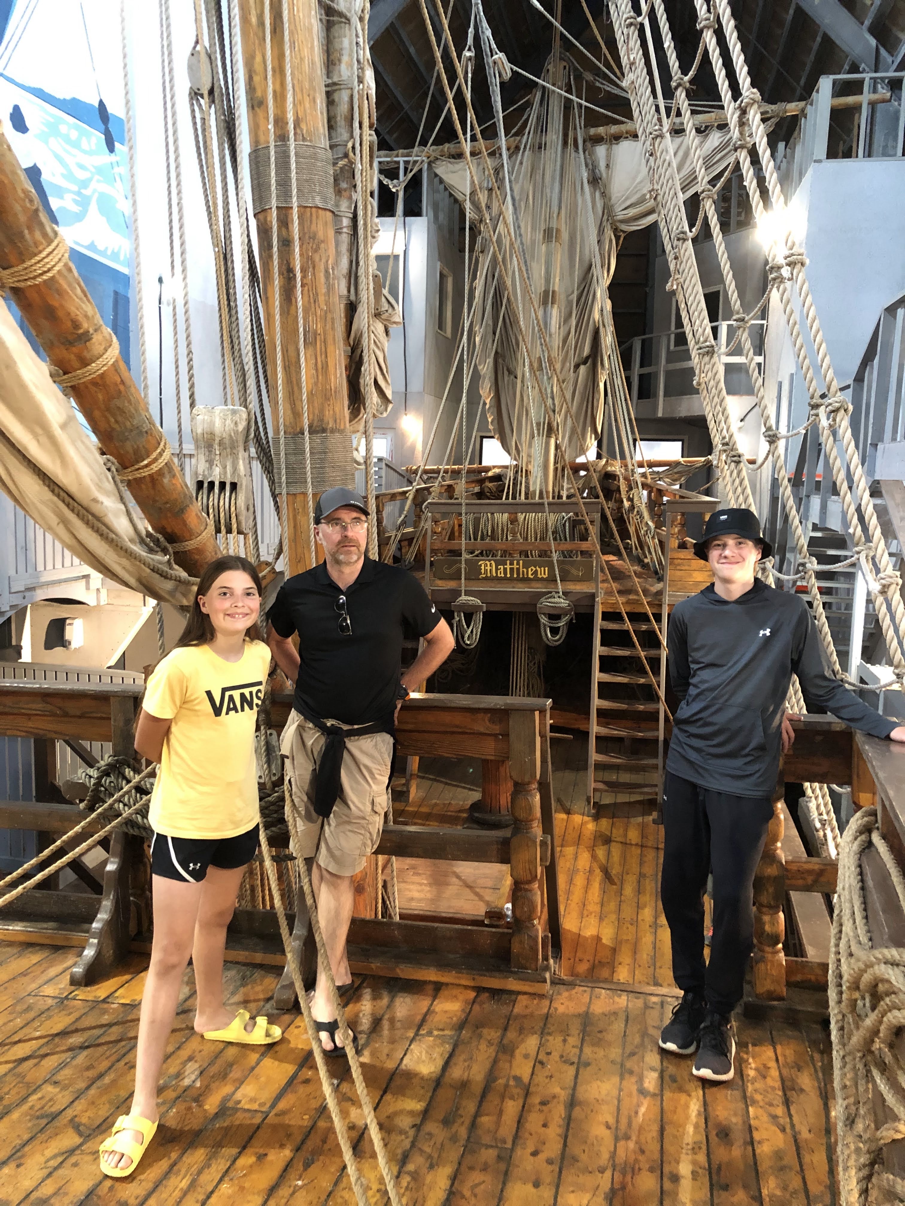 Deuxième étape : la réplique du bateau de John Cabot ou Giovanni Caboto (navigateur italien au service de l'Angleterre). Il aspire comme son compétiteur Chrisophe Colomb à trouver la route vers les Indes (mais en visant plus haut), il arrive donc à Terre-Neuve (à Bonavista) en 1497 à bord du fameur Matthew, un navire d'un équipage de 18 personnes. Les Anglais ont prétendu qu'il fut le premier Européen à découvrir la nouvelle terre, après les Vikings bien évidemment. L'absence de cartographie ou de journal ne permet pas de vérifier ce qui est probablement vilénie de leur part. Bien qu'il nait pas pas trouvé la route de commerce vers l'Asie qu'il cherchait, son voyage de 1497 permet à l'Angleterre de revendiquer un droit sur l'Amérique du Nord et de découvrir de nouvelles pêcheries gigantesques.