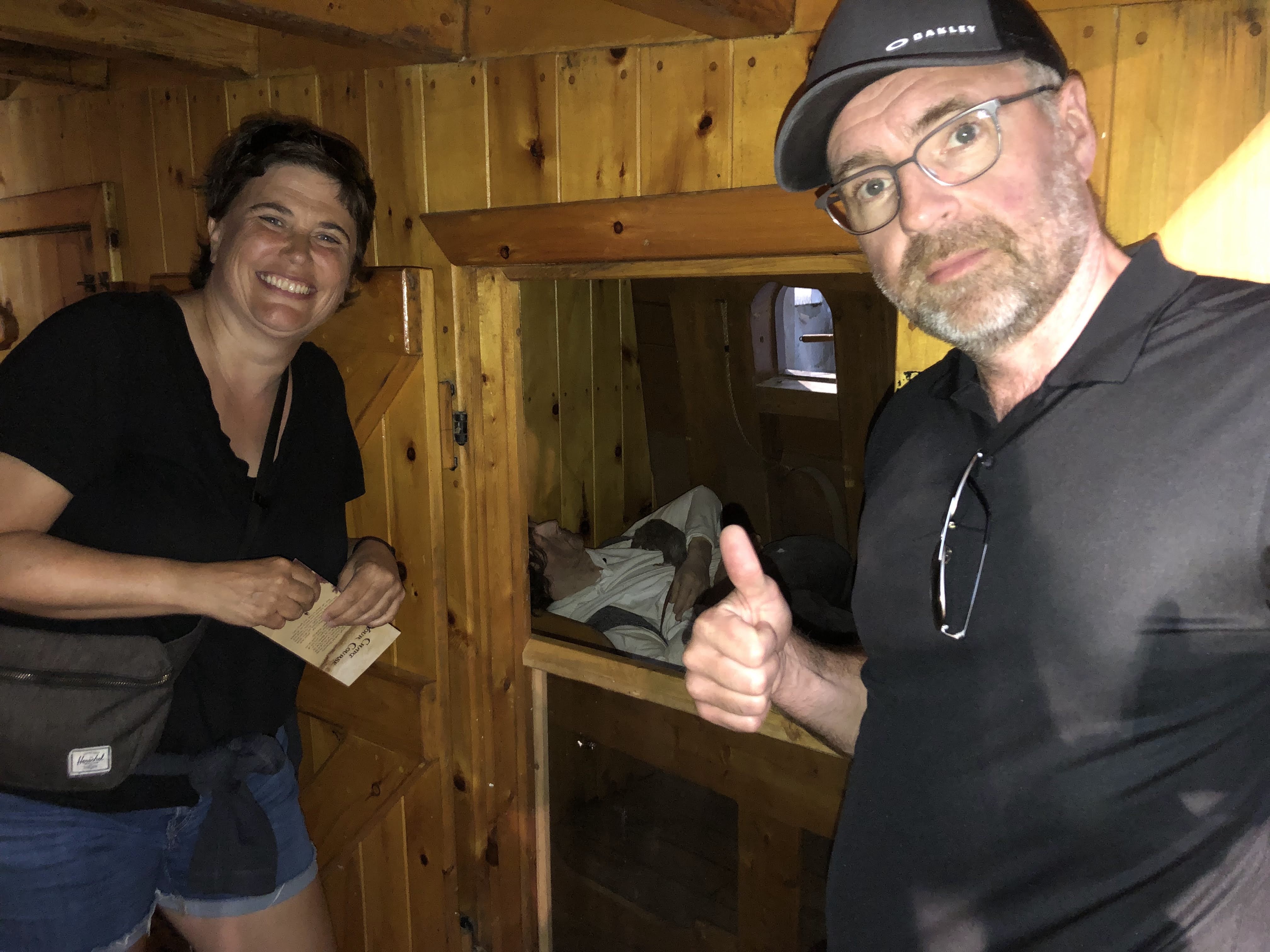 De nos jours, les cabines sont plus confortables quand même. Celle-là, c'est celle du capitaine. On imagine à peine les dortoirs dans la cale...