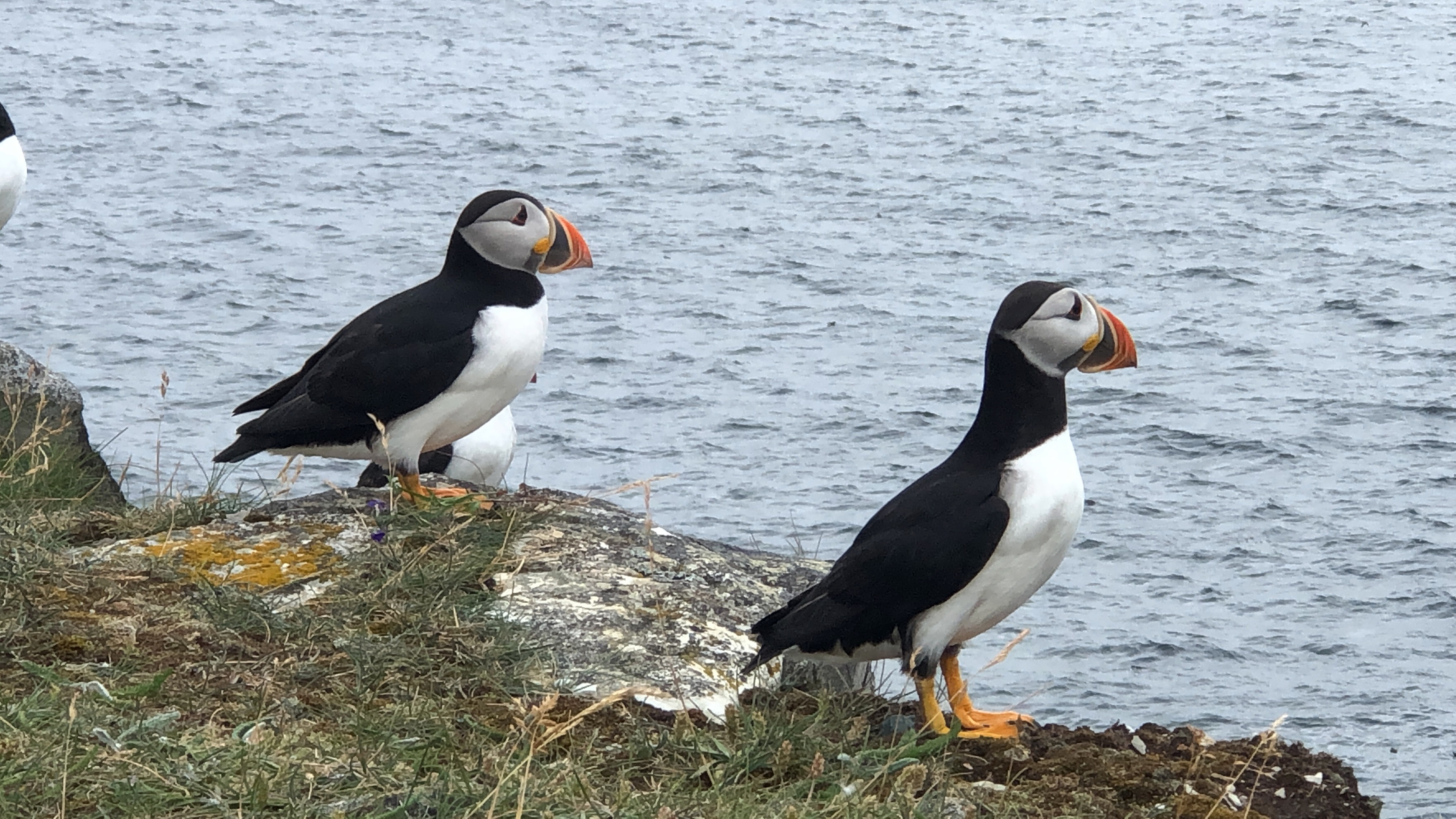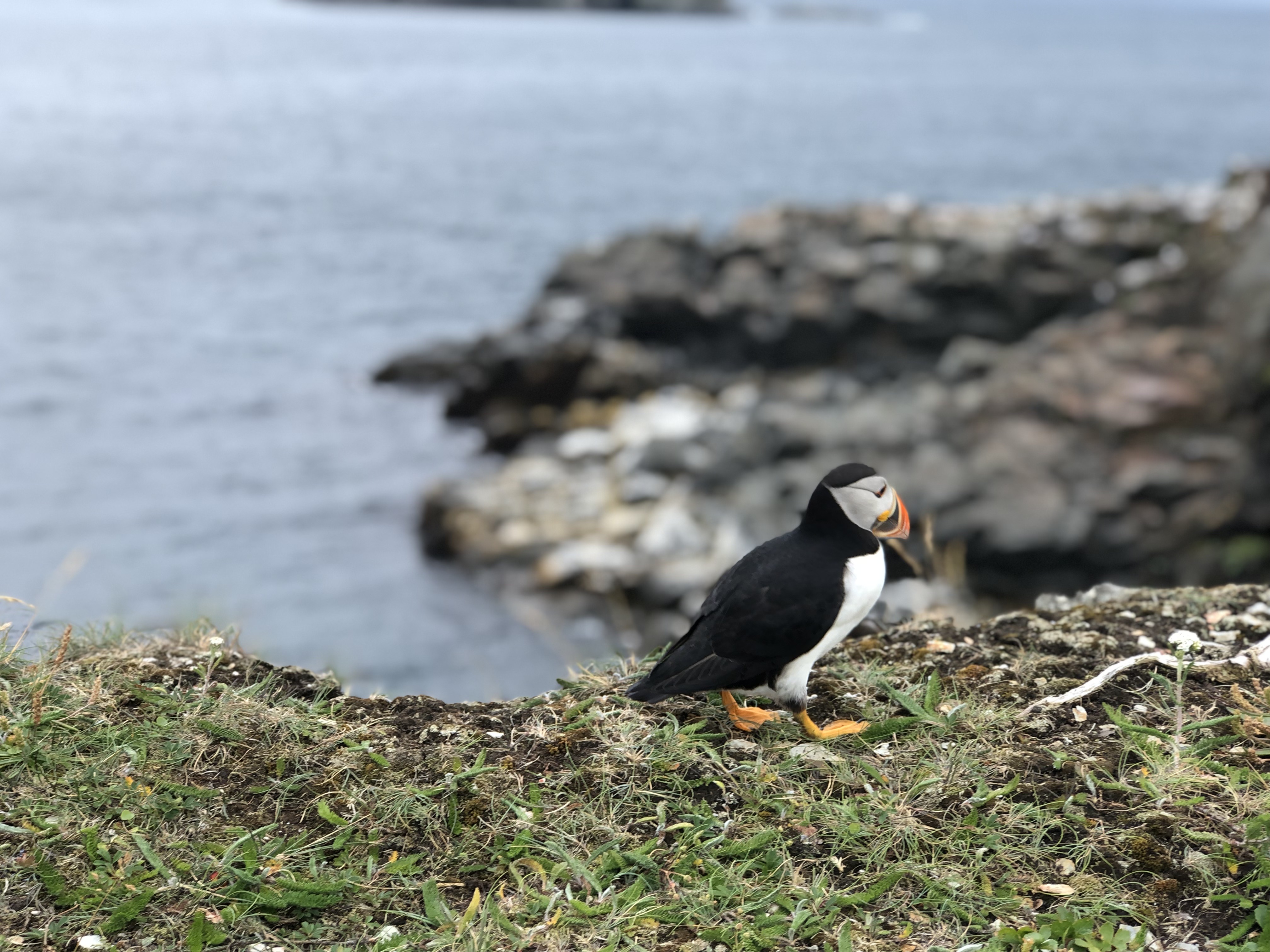 Ce matin, on a une journée plutôt tranquille devant nous, du coup on en profite pour faire plein de trucs ! Au menu (ou plutôt programme, car comme vous allez le voir, ça se mange pas, même si c'est hyper mais alors hyyyper mignon !) : observation de "Puffins" ou les fameux Macareux en français sur un site de nidification à Elliston. On brave la pluie car ces petits êtres sont vraiment adorables et on ne s'en lasse pas.
