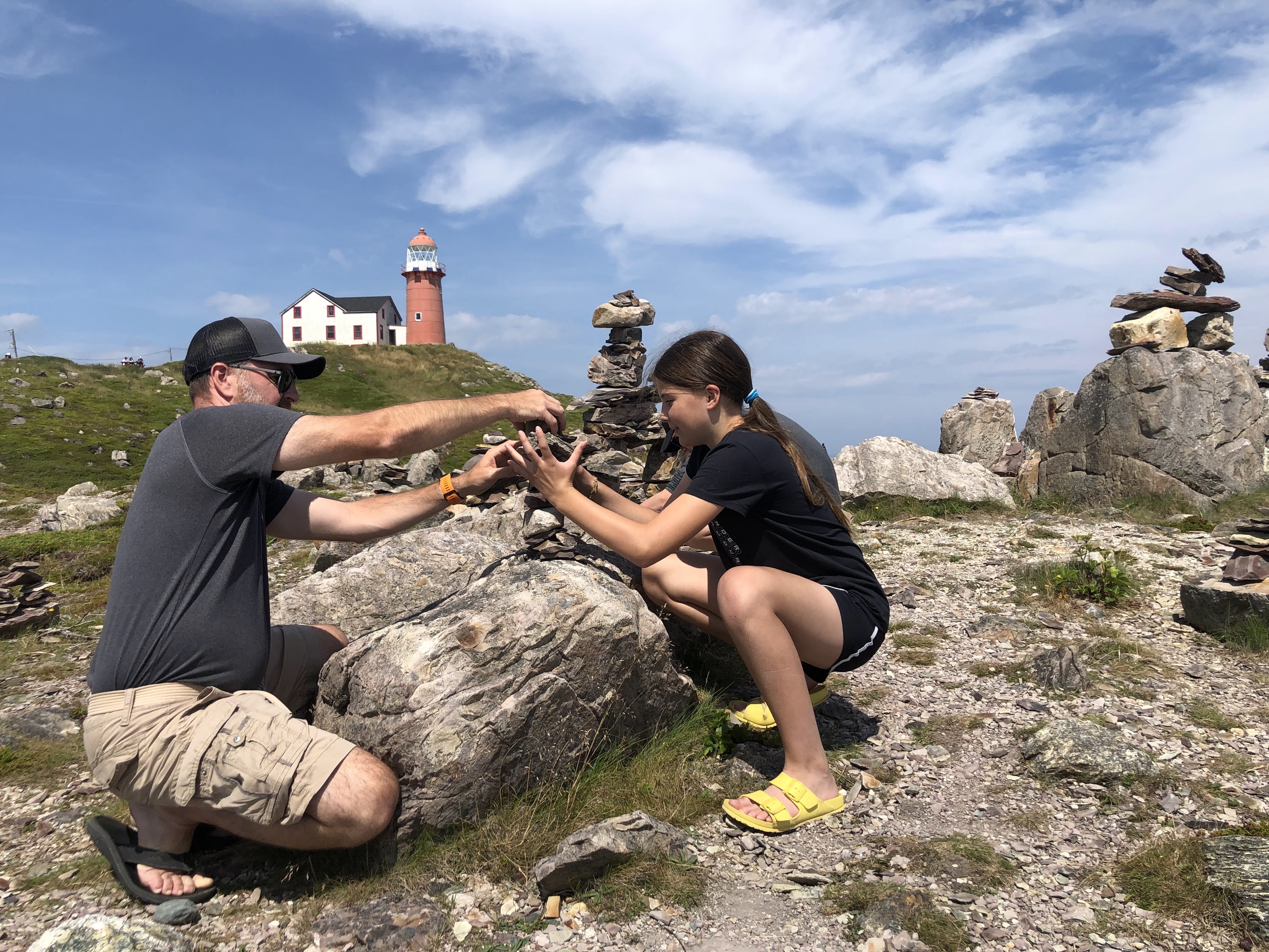 Par la suite, nous descendons au sud pour visiter le phare de FunnyLand construit en 1870. Décidément, les Newfies sont créatifs dans les noms de villages : Happy Adventure, FunnyLand,… On fait une très belle randonnée pour atteindre le phare situé sur une presqu’ile et le paysage marin qui nous entoure est magique.