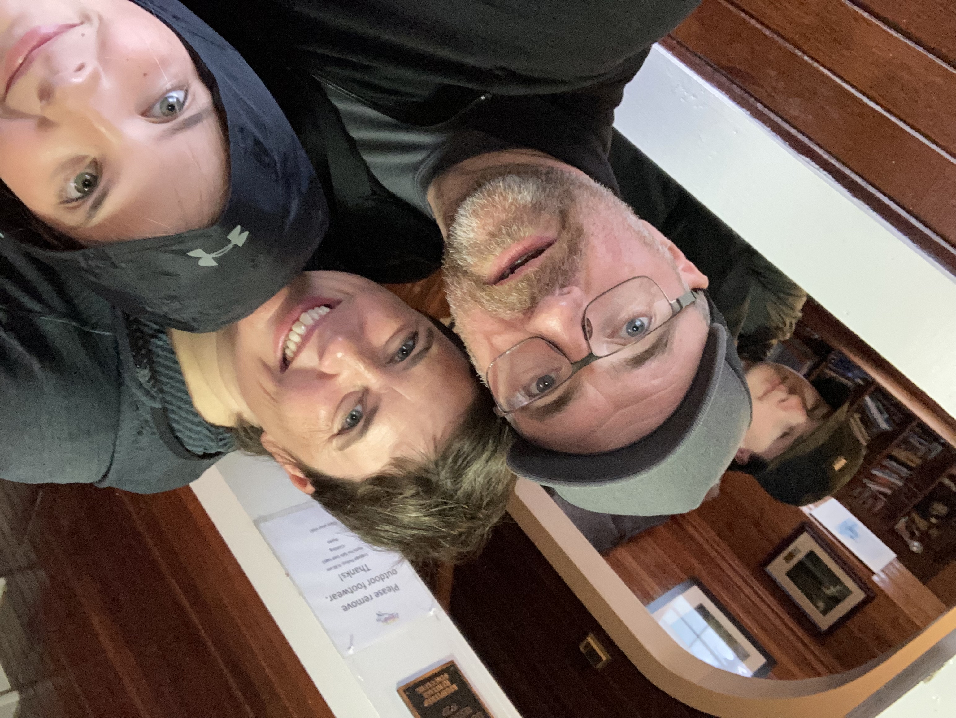 Direction le réfectoire dans le bâtiment principal où Patty et Patty nous attendent certainement. Nous enfilons nos vêtements les plus chauds et surtout nos imperméables. Après avoir affronté tout ce vent dans les derniers jours, que peut-il bien nous attendre cette fois-ci à l'extérieur? Encore plus de vent. Probablement force 18 sur l'échelle de Beaufort. Maintes flaques d'eau sont enjambées, tandis que nous arrivons finalement au chalet principal où se déroulera le déjeuner.