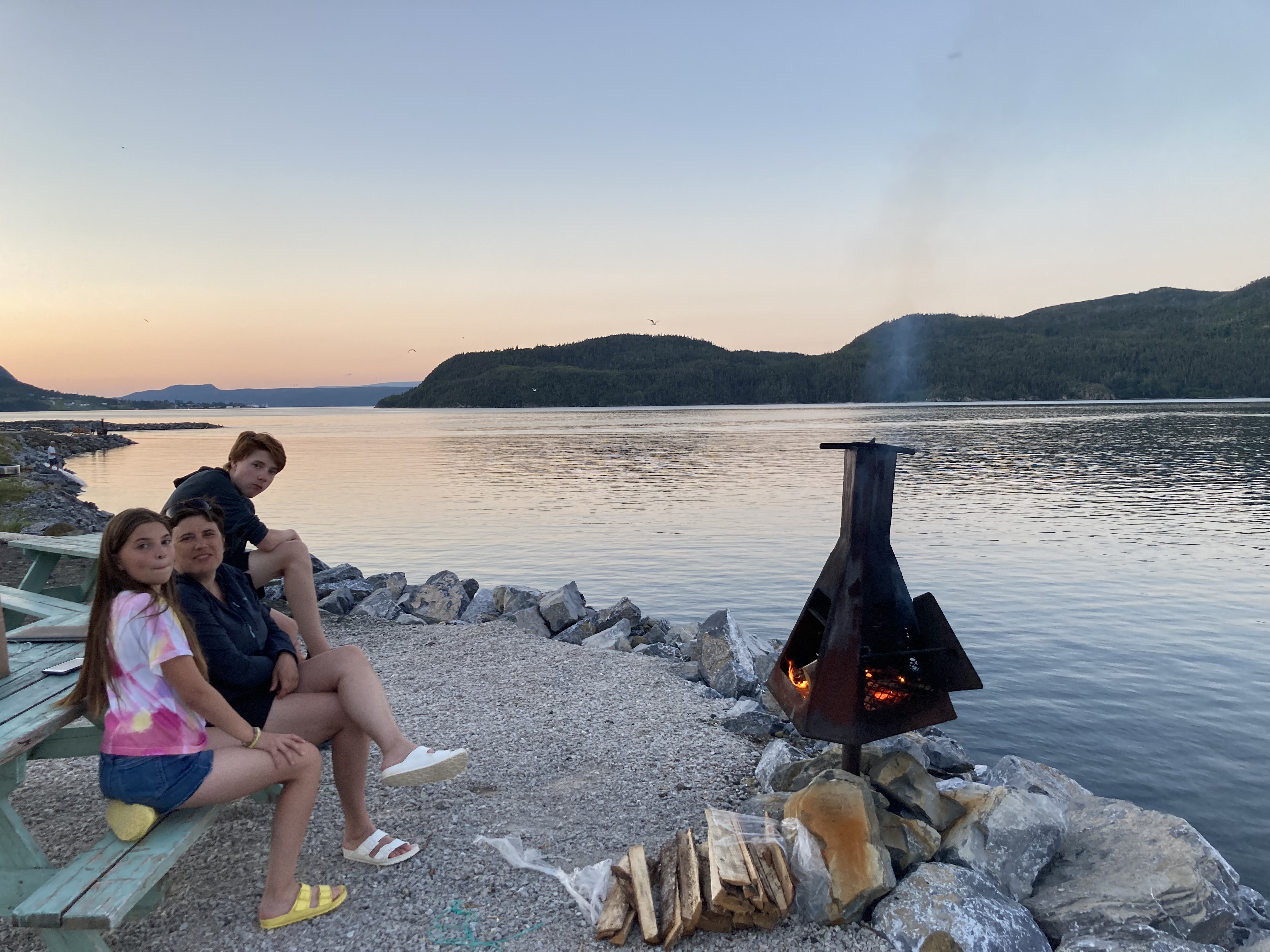 De retour aux Salt Boxes et sous une chaleure accablante, on plonge une tête dans ce qui est finalement l'autre partie de Bonne Bay (la partie connectée au Golfe du Saint-Laurent). J'y pense maintenant, mais marcher sur la croûte du manteau terrestre (donc vieille de plusieurs milliards d'années) à Terre-Neuve, c'est quand même cocasse (joke de Papa 😔).