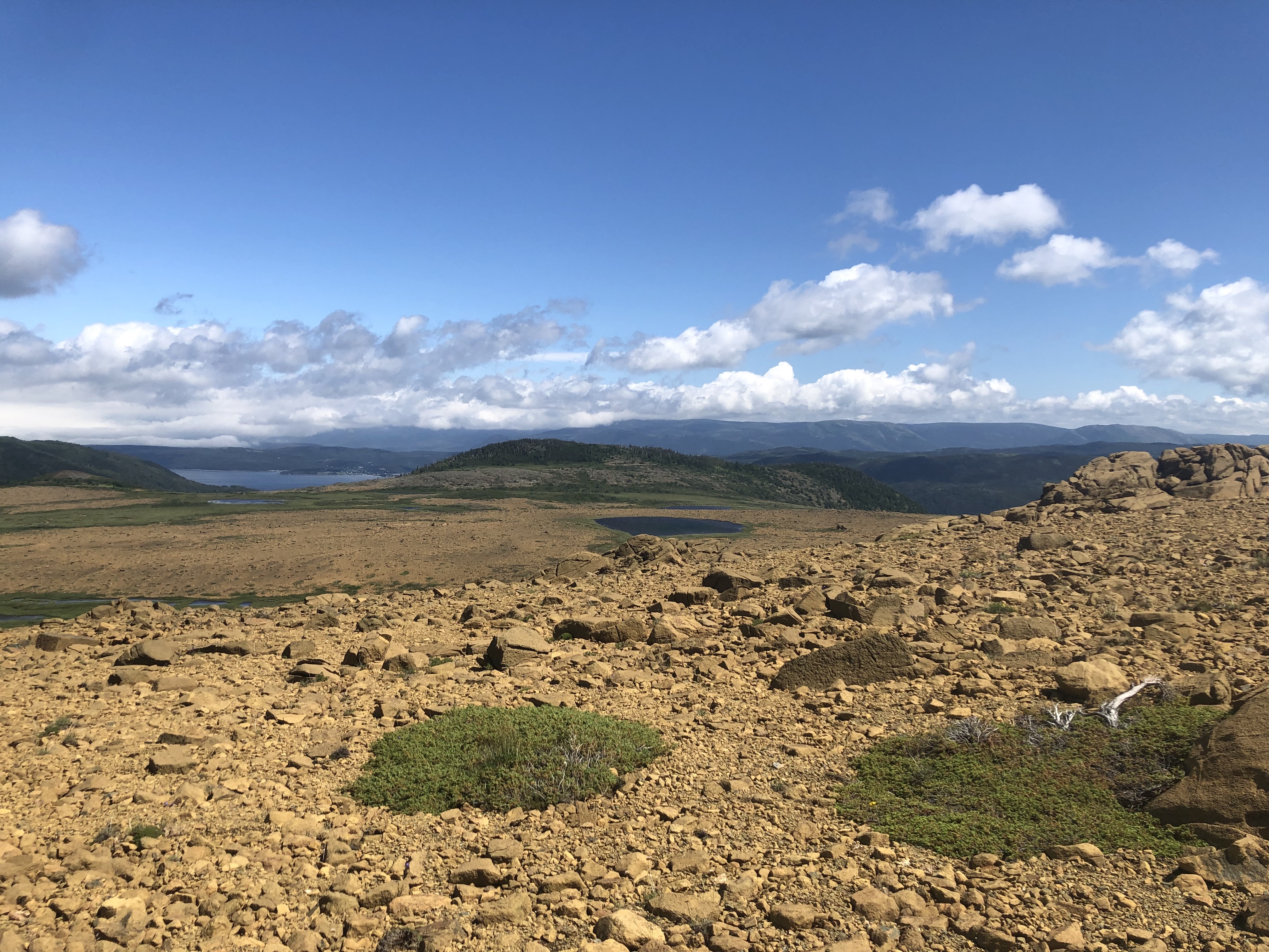 Réveil tardif et bienfaiteur aux alentours de 8:00, nous quittons bientôt pour les Tablelands! Après un petit déjeuner varié quoique sans protéine (à la grande tristesse de Papa), nous nous arrêtons pour que les parents prennent leur dose de caféine dans un petit café un peu plus bas dans le village. Une fois ravitaillés, nous entamons ce qui deviendra une des plus belles randonnés que nous n'ayions jamais faites à ce jour: les fameux Tablelands. Terre-Neuve est réellement le paradis des géologues et autres amoureux des mouvements tectoniques ou de gros cailloux.